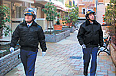 また、近年の国内の学校犯罪の多発に対応して、タウン内にある小中学校すべてにおいて、子供たちの下校時通学路に立ち、子供たちが事件に巻き込まれないよう、パトロールを実施しています。