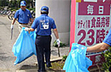 ユーカリが丘でボランティア活動を行っているNPO法人クライネスサービスに、山万及び山万グループの多くの社員が入会し、住民の方々とともに、街の防犯・防災・福祉活動を行っています。具体的には、週1回の夜間パトロールと週1~2回のデイパトロール、各種イベントでのお手伝い、また月1回の環境美化清掃活動などに参加をしています。